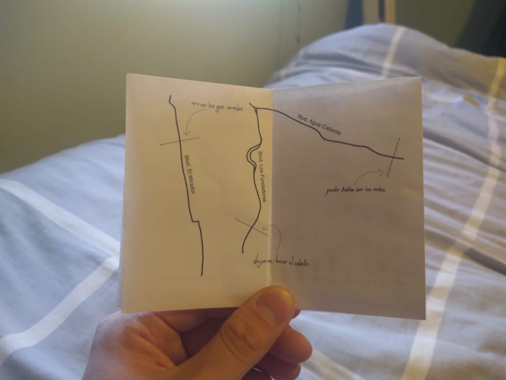 Em 2023 rodei meu terceiro longa, El Mirador. Apesar de ser uma produção muito pequena, com um clima descontraído para a equipe, eu pessoalmente estava passando por um período emocional muito difícil, e as filmagens agravaram isso. Houve situações durante a produção que me afetaram profundamente, como perder imagens de um cartão de memória de que eu não tinha feito backup corretamente e ter de refilmar, ficar sem dinheiro… Foi a primeira vez que questionei se queria continuar fazendo filmes, pelo menos dessa forma. Foi nesse contexto que fiz o primeiro segmento de Callejones, um dia depois de terminar as filmagens de El Mirador.