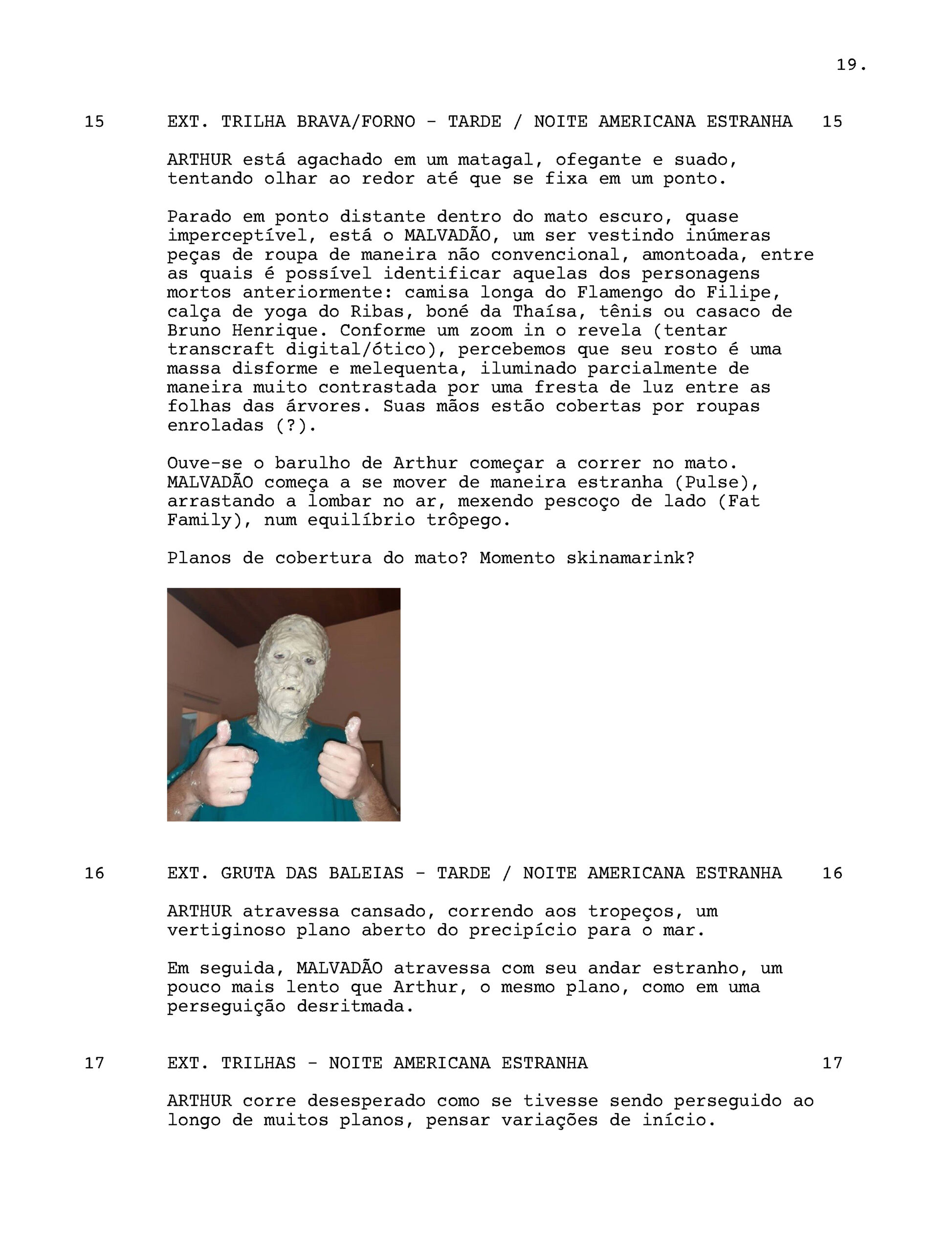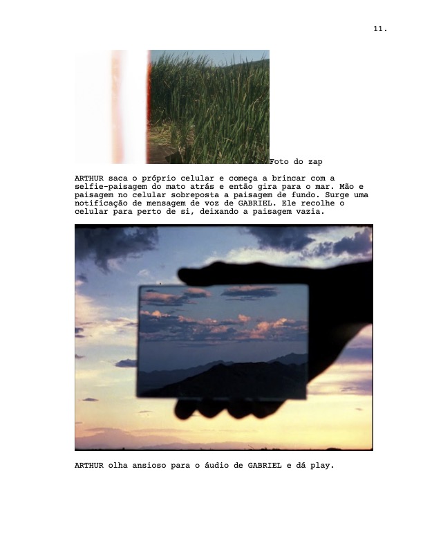 … eu simplesmente escrevo quaisquer imagens ou ideias que surgem na minha cabeça nas notas do celular. Pode ser algo muito fragmentado e difícil de retomar depois. Mas, sim, às vezes, basta uma única ideia que consiga conectar esses fragmentos em uma estrutura coesa e coerente para que seja possível, então, trabalhar no roteiro. Na verdade, para escrever esta resposta, criei coragem de olhar minhas anotações antigas e meu percurso criativo, e isso realmente mostra que o trabalho final se desviou MUITO da ideia inicial. Geralmente, também é possível pensar em outros filmes a partir desses fragmentos que não foram utilizados. Então, acho que posso recuperar essas ideias descartadas no futuro, e é assim que você mantém alguma inspiração vinda de você mesmo.
