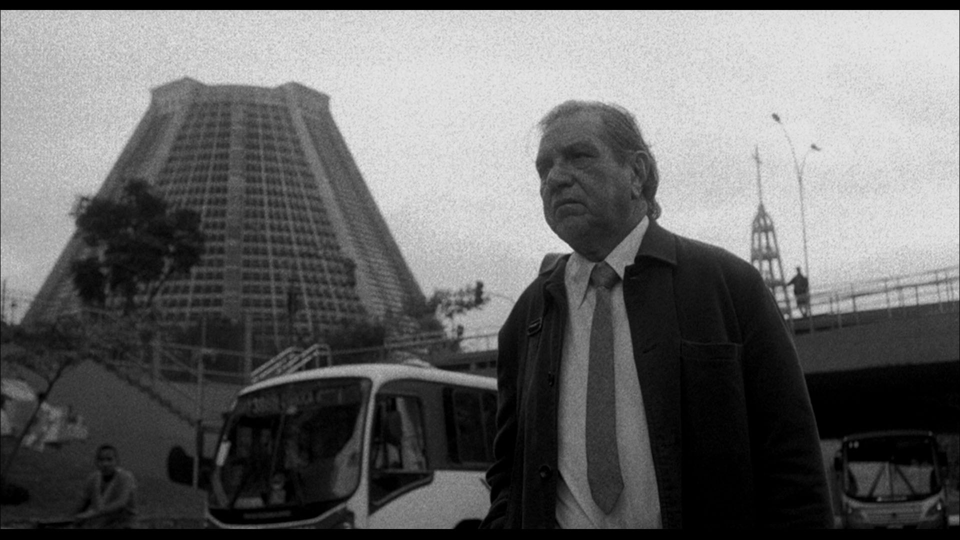 Em primeiro lugar, eu acho importante dizer que, sobretudo no contexto de um cinema universitário, amador, nem tudo é previsto antecipadamente. Há muito descontrole e acidente entre a concepção do filme e o resultado em si. Eu não saberia dizer, por exemplo, até que ponto esta estranheza era premeditada. Lembro de ter planejado, para a primeira parte do filme (todo o segmento em preto e branco), um ritmo cerrado, maquinal. Ação, ação, ação. Robert Bresson, afinal, era a grande referência. Mas, revendo agora o filme, eu percebo algo até mesmo do Ozualdo Candeias, que também era uma fixação minha naquela época. Refiro-me a uma certa imediatez, algo meio visceral (para não dizer primitivo) na relação entre figura e fundo. Na cena da caminhada para casa, após a afinação do piano, lembro que eu tinha como referência o curta O castelo do poeta (1959), do Joaquim Pedro de Andrade. Contudo, talvez pela construção artificial da ambiência sonora, o filme termina por gerar um efeito bem diferente do tom prosaico no filme de Joaquim Pedro. O que se sobressai é a estranheza, a clausura. Uma caminhada em huis clos na qual a cidade filmada parece um mundo à parte, sem qualquer relação com a realidade.